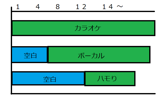 歌があるところをRECするわけなので特にイントロの部分なんかは曲によっては歌がなかったりします。もちろんその部分は空白になりますよね。