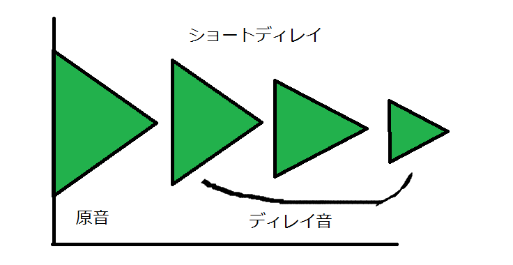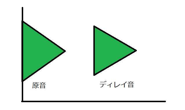 原音に対して遅れた音(ディレイ音)を図にするとこうなります